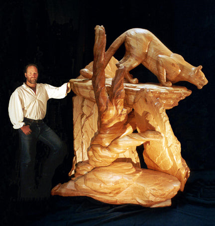 My StoryJeff Hughes with life-sized wood sculpture, Klandaghi-and of the Mountain